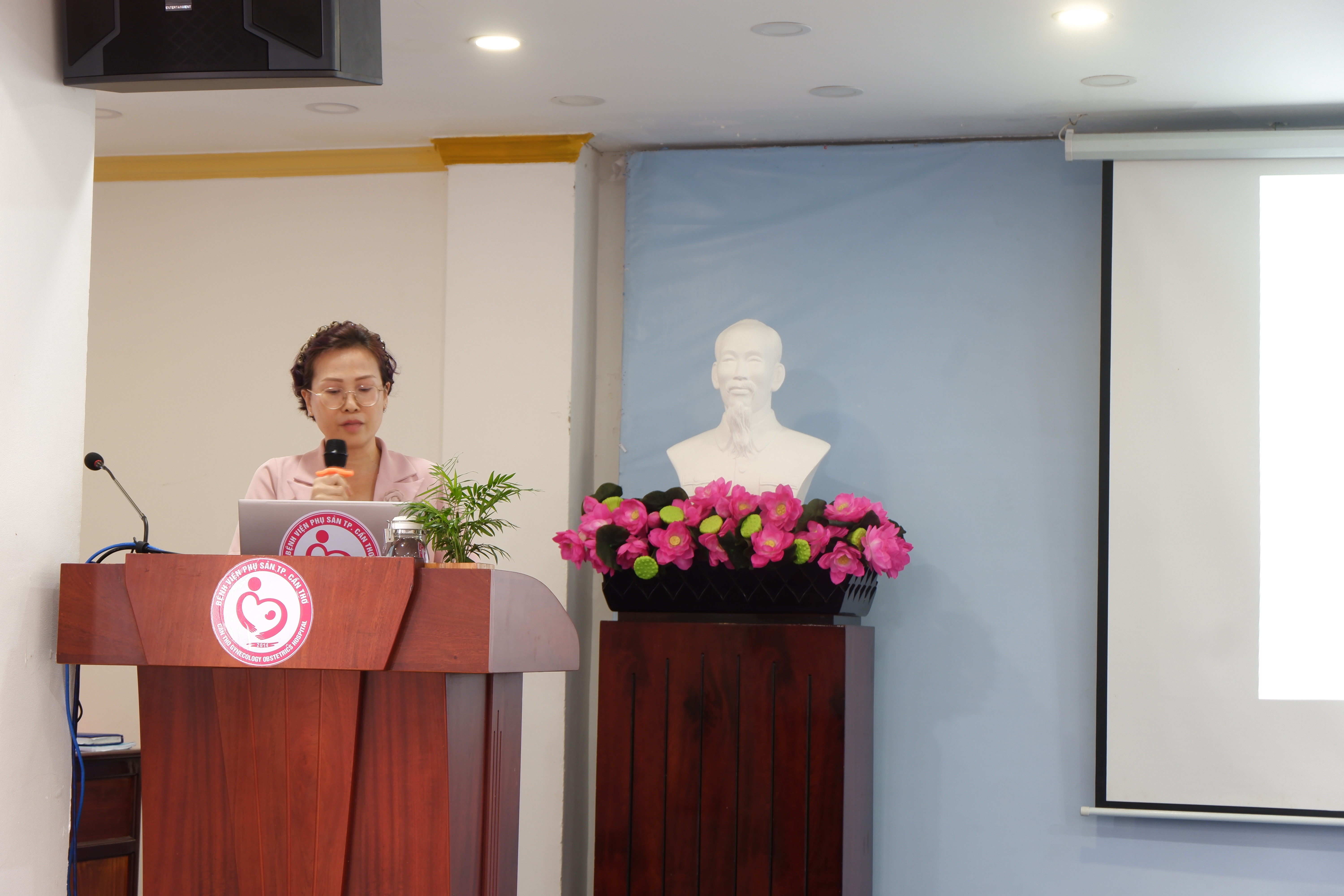 ThS. Trương Thị Bích Ngọc – Chuyên gia Kiểm soát nhiễm khuẩn - Bệnh viện Đa khoa Quốc tế Hạnh Phúc tham gia báo cáo chuyên đề tại lớp tập huấn