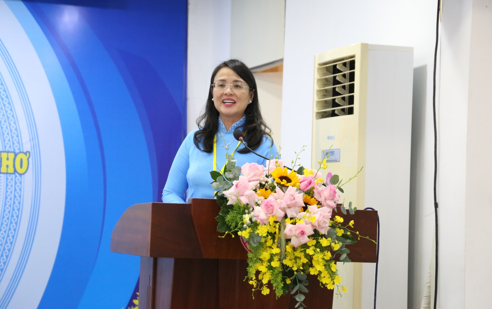 Bà Lê Thị Sương Mai - Ủy viên Ban Chấp hành Tổng Liên đoàn Lao động (LĐLĐ) Việt Nam, Thành ủy viên, Phó Chủ tịch Ủy ban MTTQ Việt Nam thành phố, Chủ tịch LĐLĐ TP. Cần Thơ phát biểu chỉ đạo tại Đại hội