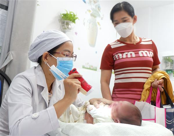 Ảnh minh họa: BS.CKII. Thạch Thị Ngọc Yến - Phó Giám đốc Trung tâm Nhi Sơ sinh đang thăm khám cho bệnh nhi