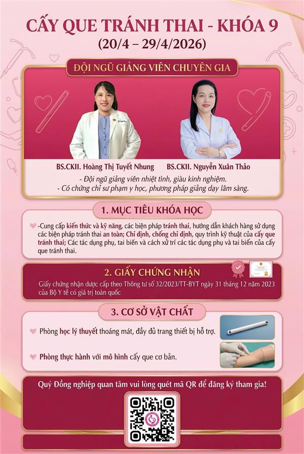 CHIÊU SINH KHÓA ĐÀO TẠO KỸ THUẬT CẤY QUE TRÁNH THAI – KHÓA 9