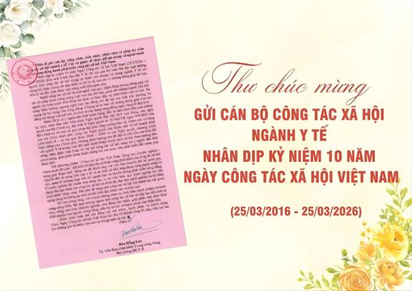 Nhân kỷ niệm 10 năm Ngày Công tác xã hội Việt Nam (25/3), Bà Đào Hồng Lan - Ủy viên Trung ương Đảng, Bộ trưởng Bộ Y tế đã gửi thư chúc mừng và tri ân sâu sắc đến đội ngũ làm công tác xã hội (CTXH) trên cả nước.