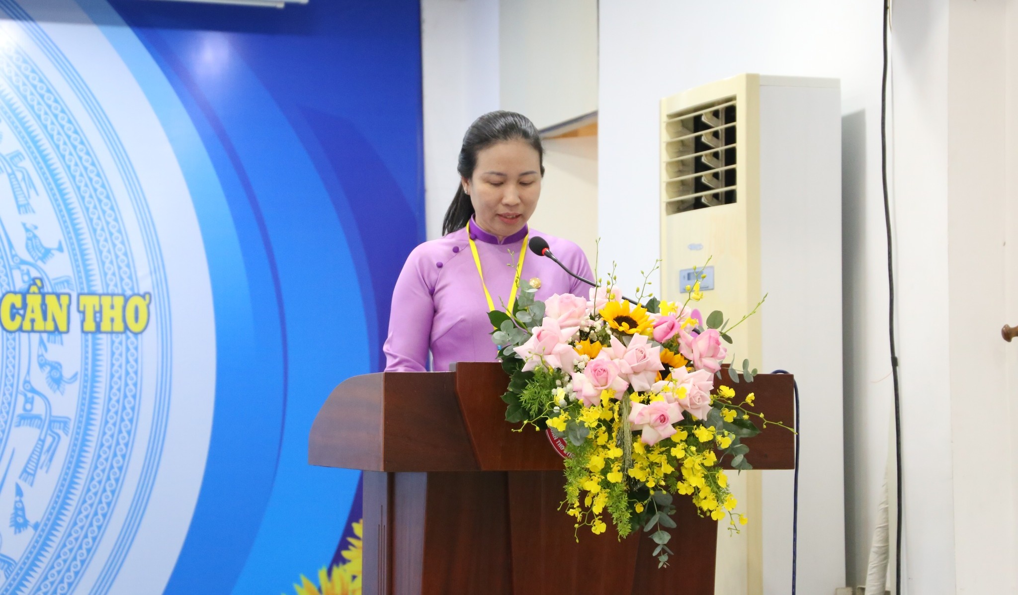 Bà Lê Thị Sương Mai - Ủy viên Ban Chấp hành Tổng Liên đoàn Lao động (LĐLĐ) Việt Nam, Thành ủy viên, Phó Chủ tịch Ủy ban MTTQ Việt Nam thành phố, Chủ tịch LĐLĐ TP. Cần Thơ phát biểu chỉ đạo tại Đại hội