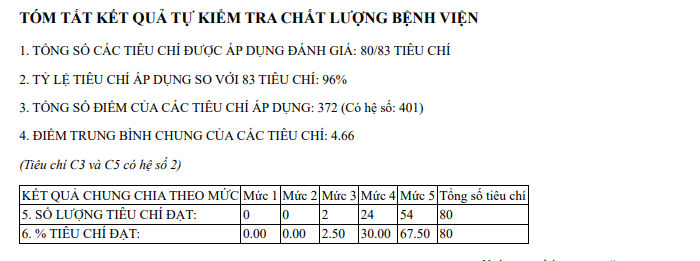 Bệnh viện Phụ sản TP. Cần tự kiểm tra đánh giá chất lượng bệnh viện ghi nhận đạt mức 4.66/5 điểm. Kết quả này khẳng định những nổ lực không ngừng của tập thể y bác sĩ và VC-NLĐ bệnh viện trong việc nâng cao chất lượng khám chữa bệnh, hướng đến sự an toàn và hài lòng cao nhất cho người bệnh.